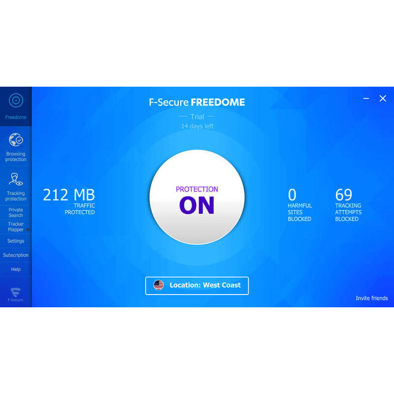 FREEDOME VPN prevents third parties (such as your Internet service provider) from tracking you and gaining insight into your online activity.